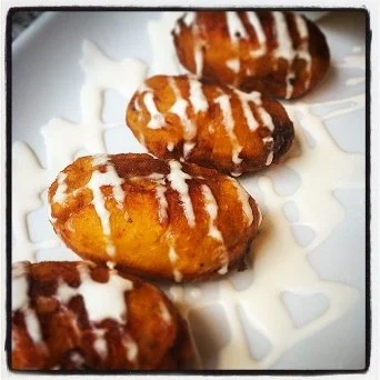 4. Make a puree with the plantain and do small balls (meatballs size) with it, you can put a piece of your cheese of choice inside at this moment. Wet your hands before to avoid stickiness.